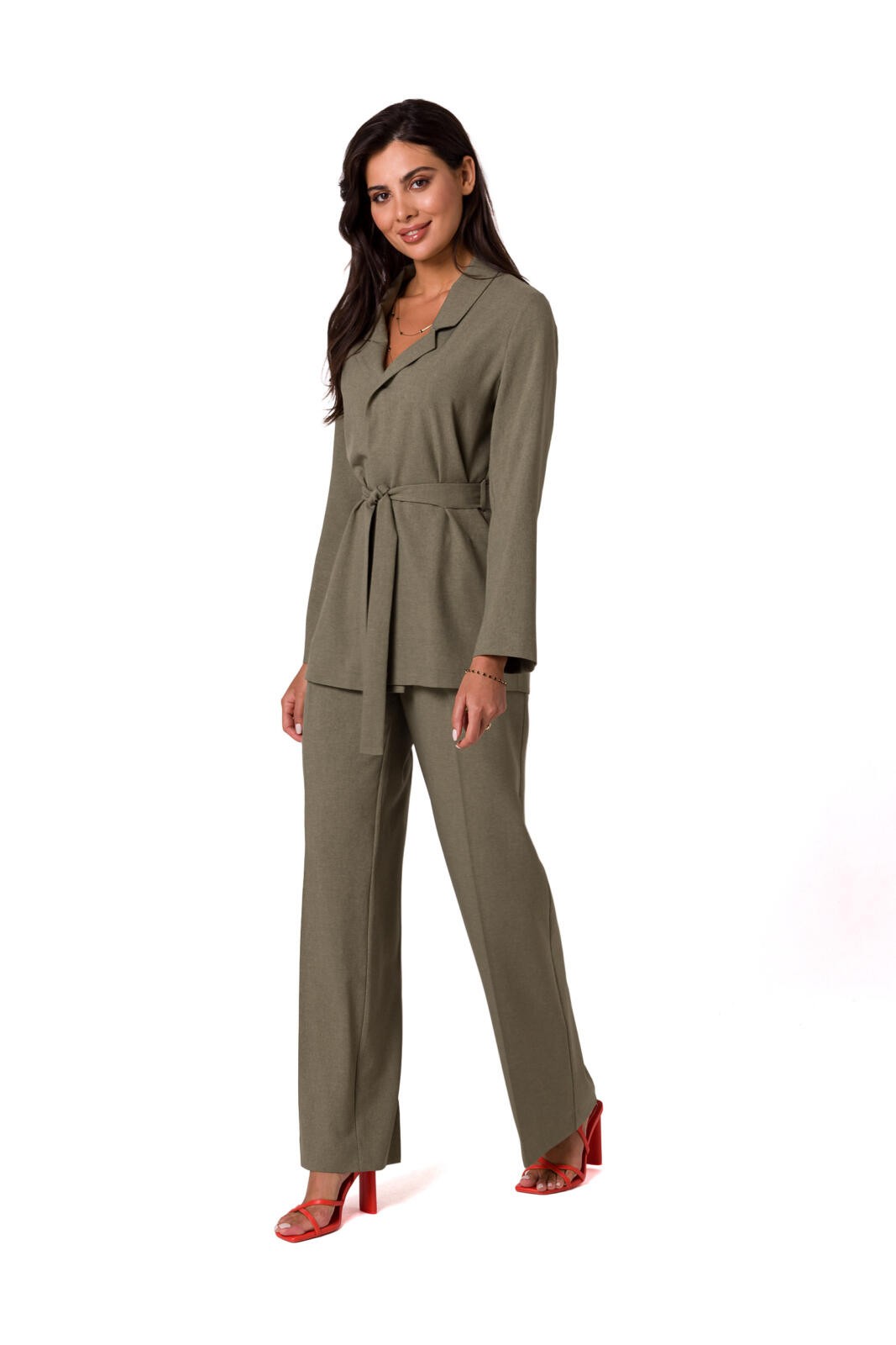 Ένα κλασικό καλοκαιρινό, ελαφρύ σακάκι χωρίς κουμπιά με ζώνη δεμένη στη μέση. Σακάκι χωρίς επένδυση.