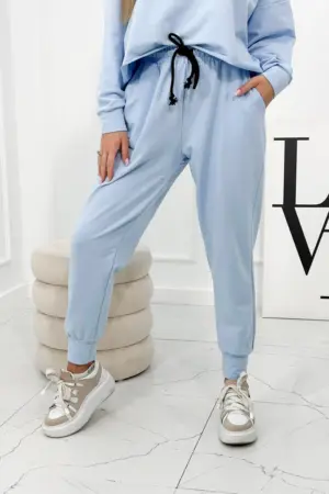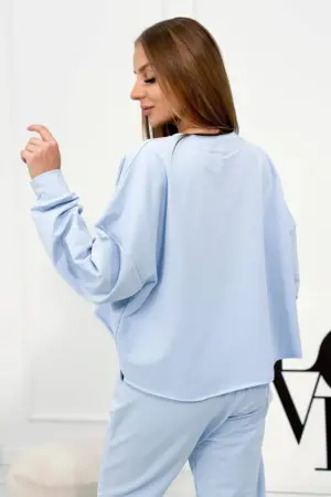 We present you a 2-piece set. The sets consist of a blouse and trousers. Oversize sweatshirt, plain without prints. Trousers with pockets and a tie at the waist. The set is made of high-quality material. The size is universal and will be suitable for ladies in size S or M.