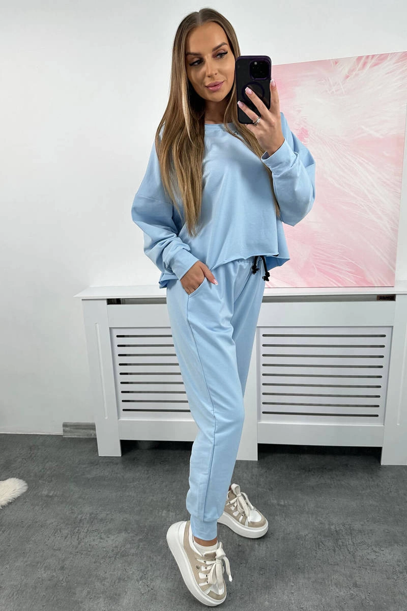 We present you a 2-piece set. The sets consist of a blouse and trousers. Oversize sweatshirt, plain without prints. Trousers with pockets and a tie at the waist. The set is made of high-quality material. The size is universal and will be suitable for ladies in size S or M.