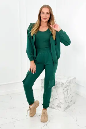 The 3-in-1 Turkish set is an extremely stylish and practical set that perfectly combines comfort with fashion. Consisting of a sweatshirt, a ribbed top and trousers with pockets, this set is the dream of anyone looking for versatile and attractive clothes. The sweatshirt is the central element of the set. Its cut and unconventional design create a unique character that can be adapted to various occasions. The ribbed top, which is another element of the set, adds a bit of a sporty character. Interesting stripe patterns give it a unique charm and stand out from other clothes. The top can be worn alone or as a layer under a sweatshirt, which allows you to create a variety of styles. Trousers with pockets complete the look, adding practicality and functionality. The pockets are perfect for storing small items such as keys or a phone. The comfortable cut of the trousers makes them an ideal choice for both everyday walks and meetings with friends. The 3-in-1 Turkish set is a proposition for people who value comfort and at the same time do not want to give up a fashionable appearance. This set perfectly fits current fashion trends, allowing you to create original styles for any occasion. The size is universal and will be suitable for women in size S, M or L.