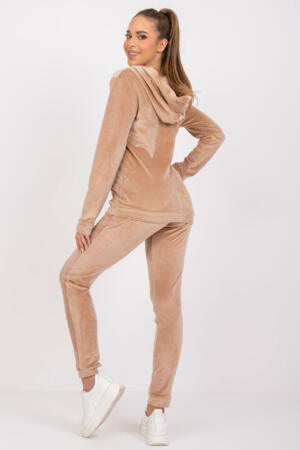Σετ από βελούδο που αποτελείται από φούτερ και μακρύ παντελόνι. Φούτερ με μακριά μανίκια και κουκούλα, με φερμουάρ. Τσέπες στο μπροστινό μέρος. Μακρύ παντελόνι με κορδόνι στη μέση και συρόμενες τσέπες στα πλάγια.