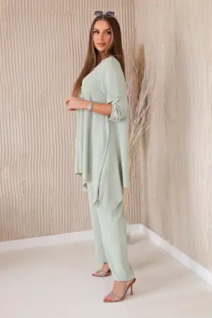 An Italian two-piece set consisting of a flared blouse and trousers is an elegant set that adds charm and style to any styling. A flared blouse gives subtle femininity, emphasizing the figure and at the same time ensuring freedom of movement. The classic cut of the trousers makes them match perfectly with an elegant blouse, creating a coherent and stylish whole. Additionally, the key-shaped pendant is a charming detail that adds originality and character to this set, creating a harmonious composition. It is an elegant accessory that emphasizes the uniqueness and attention to detail in the entire styling. This Italian set is perfect for many occasions, from business meetings to romantic dates. This is a refined option for people who value elegance and comfort in one. The size is universal and fits women wearing size S, M or L.