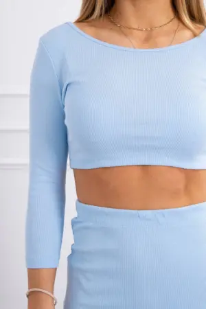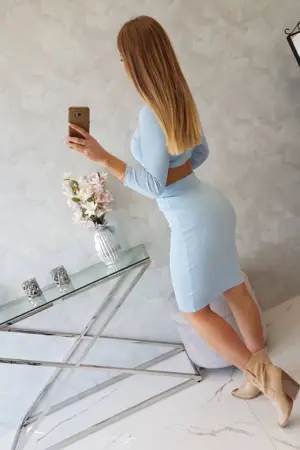 We present you a set of blouses with a skirt. Both the blouse and skirt are made of ribbed material. The fitted set perfectly emphasizes the figure. This material is elastic thanks to elastane. The set is made of high quality material. The size is universal and will be suitable for ladies in size XS, S or M.