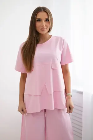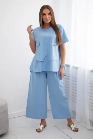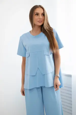 The New Punto set, consisting of a blouse and trousers, is the perfect solution for women who value comfort, style and versatility. The blouse and trousers create a harmonious duo that is perfect for both everyday and more formal occasions. The blouse from this set impresses with its modern cut and high-quality workmanship. Made of soft and pleasant to the touch material, it ensures wearing comfort all day long. Its universal design allows you to easily combine it with various items of clothing, so you can create many different styles. Trousers from New Punto are the true quintessence of elegance and comfort. Their loose cut does not restrict movement. Thanks to the high-quality material, the trousers look stylish and exclusive, giving each styling a unique character. This set is a perfect choice for women who are looking for an elegant and comfortable set for everyday use. Thanks to its versatility and timeless design, this set will be an irreplaceable base in your wardrobe. The size is universal and fits women wearing size S, M or L.