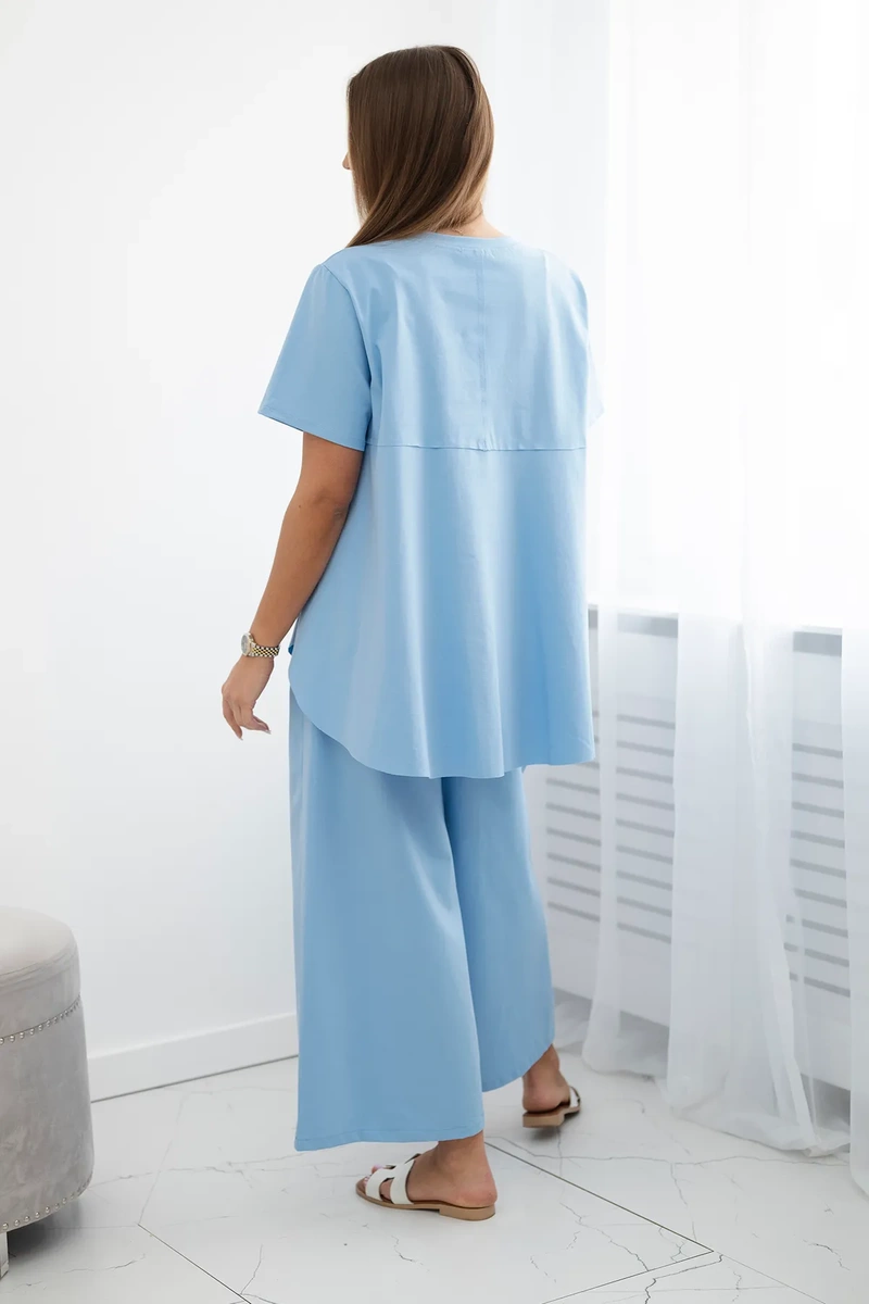 The New Punto set, consisting of a blouse and trousers, is the perfect solution for women who value comfort, style and versatility. The blouse and trousers create a harmonious duo that is perfect for both everyday and more formal occasions. The blouse from this set impresses with its modern cut and high-quality workmanship. Made of soft and pleasant to the touch material, it ensures wearing comfort all day long. Its universal design allows you to easily combine it with various items of clothing, so you can create many different styles. Trousers from New Punto are the true quintessence of elegance and comfort. Their loose cut does not restrict movement. Thanks to the high-quality material, the trousers look stylish and exclusive, giving each styling a unique character. This set is a perfect choice for women who are looking for an elegant and comfortable set for everyday use. Thanks to its versatility and timeless design, this set will be an irreplaceable base in your wardrobe. The size is universal and fits women wearing size S, M or L.
