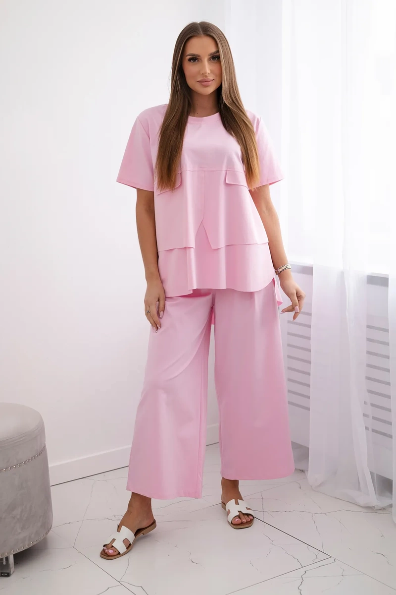 The New Punto set, consisting of a blouse and trousers, is the perfect solution for women who value comfort, style and versatility. The blouse and trousers create a harmonious duo that is perfect for both everyday and more formal occasions. The blouse from this set impresses with its modern cut and high-quality workmanship. Made of soft and pleasant to the touch material, it ensures wearing comfort all day long. Its universal design allows you to easily combine it with various items of clothing, so you can create many different styles. Trousers from New Punto are the true quintessence of elegance and comfort. Their loose cut does not restrict movement. Thanks to the high-quality material, the trousers look stylish and exclusive, giving each styling a unique character. This set is a perfect choice for women who are looking for an elegant and comfortable set for everyday use. Thanks to its versatility and timeless design, this set will be an irreplaceable base in your wardrobe. The size is universal and fits women wearing size S, M or L.