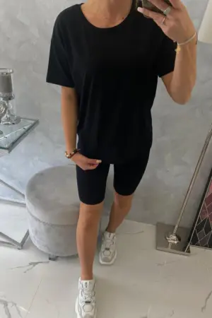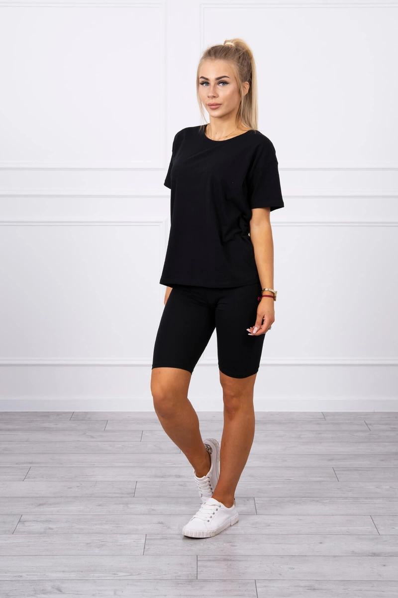 We present you a set of blouses and pants. Smooth blouse without printing leggings have a short leg. The set is made of high quality material. The size is universal and will be suitable for ladies wearing sizes S, M or L.