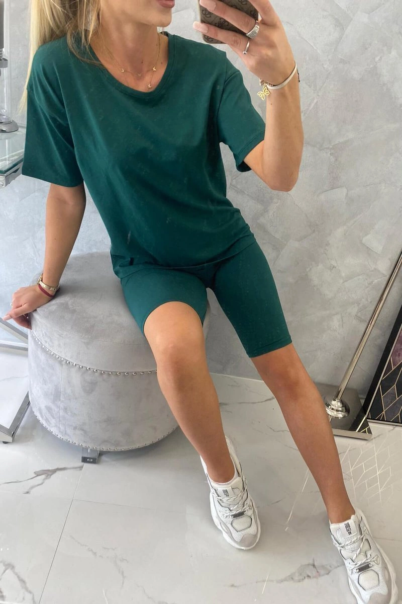 We present you a set of blouses and pants. Smooth blouse without printing leggings have a short leg. The set is made of high quality material. The size is universal and will be suitable for ladies wearing sizes S, M or L.