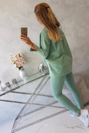 We present you a set of blouses and trousers. Oversize blouse with an indentation at the front. . The set is made of high quality material. The size is universal and will be suitable for ladies in sizes S, M or L.
