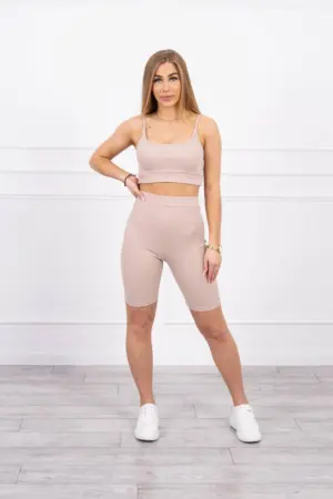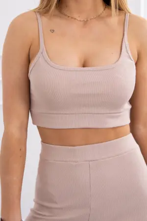 We present a set of blouses and leggings. Tank top. High-waisted leggings. Ribbed blouse and leggings. The set is made of high quality material. The size is universal and will be suitable for ladies in sizes S, M or L.