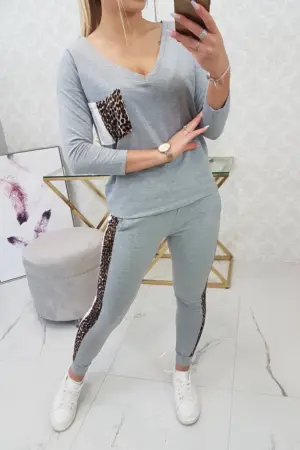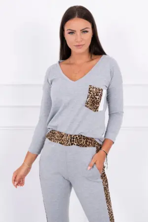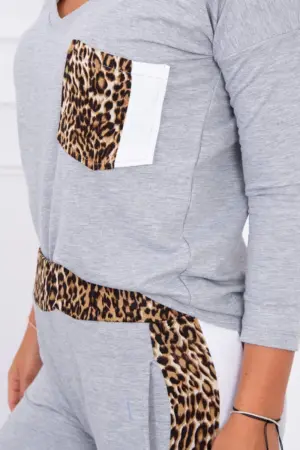 We present you a set of blouses and pants. The set has inserts with a leopard motif. Blouse at the front with a sewn-in pocket. The pants have pockets. The set is made of high quality material. The size is universal and will be suitable for ladies wearing sizes S, M or L.
