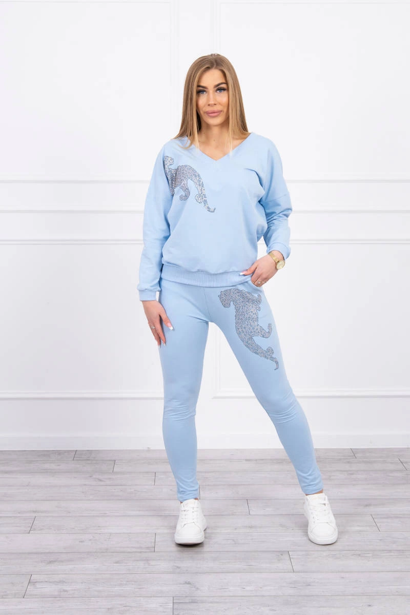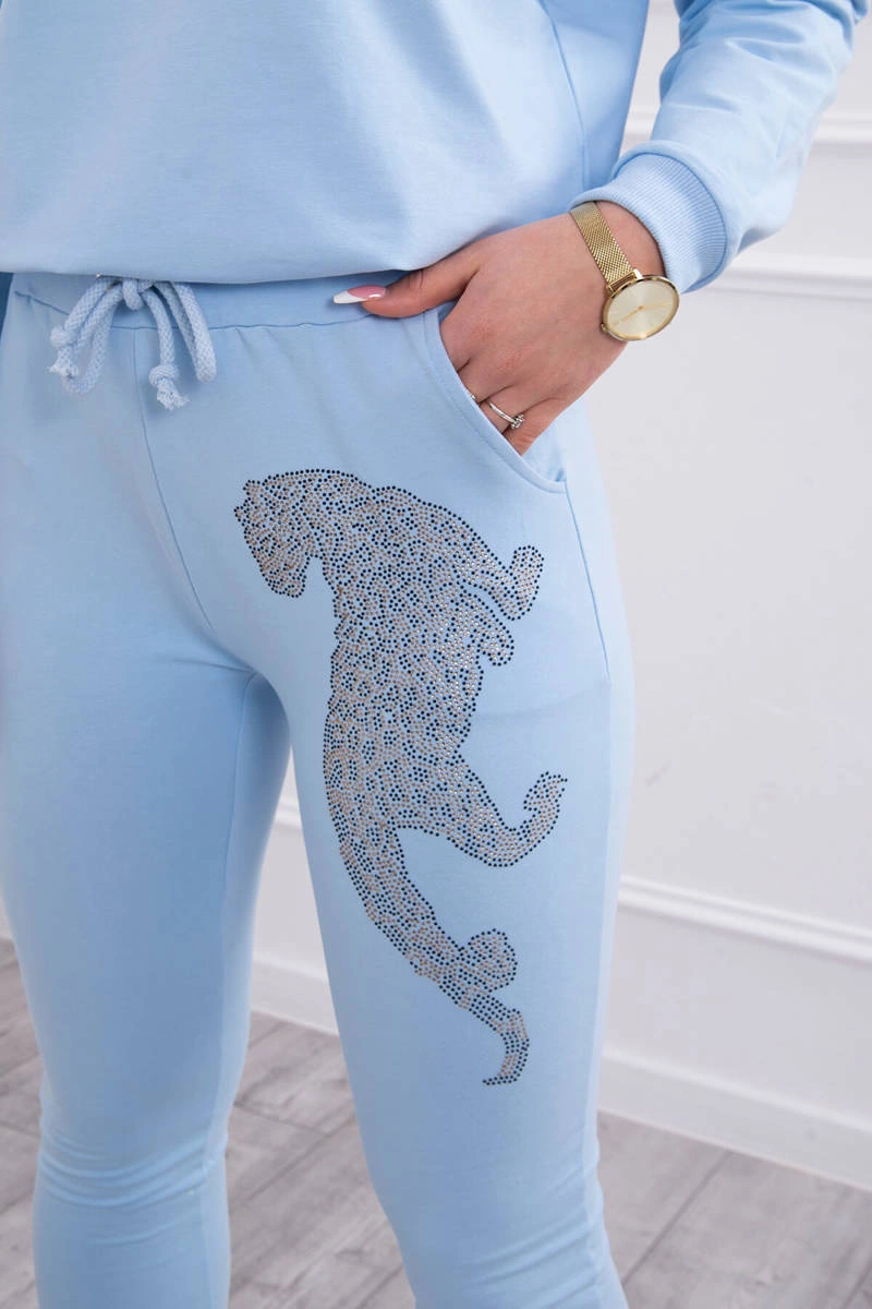 We present you a set of sweatshirts and pants. The sweatshirt and pants have a zircon panther. Pants with pockets and a binding at the waist. V-neck sweatshirt. The set is made of high quality material. The size is universal and will be suitable for ladies in sizes S, M or L.