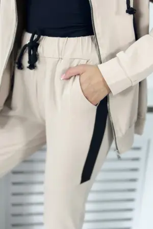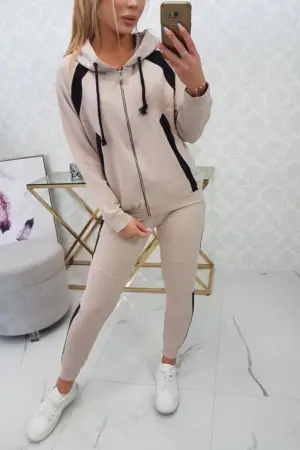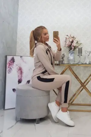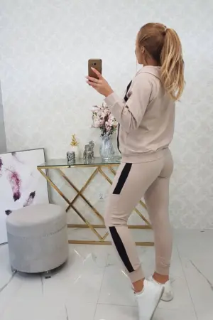 We present you a set of sweatshirts and pants. The set has stripes. Sweatshirt with pockets and a hood. The pants have pockets. The set is made of high quality material. The size is universal and will be suitable for ladies wearing sizes S, M or L.