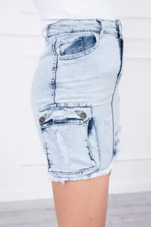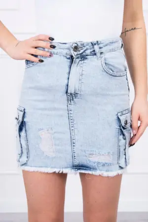 We present you a denim skirt. The skirt has two additional pockets on the sides. Skirt with fashionable abrasions. An interesting proposition for all ladies. The skirt is made of high quality material. Skirts are sold in packs of 2 pieces. Sizes in the package S/M and L/XL.