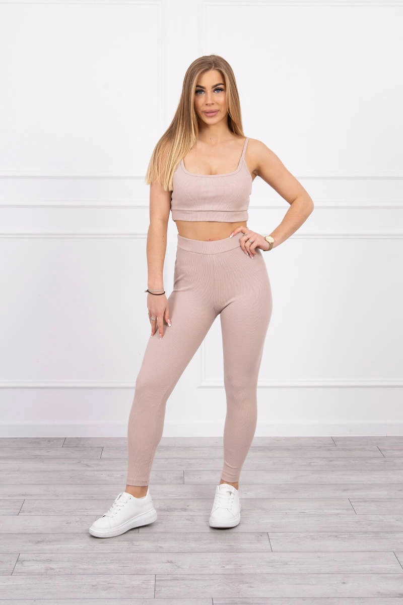 We present a set of blouses and leggings. Tank top. Ribbed blouse and leggings. The set is made of high quality material. The size is universal and will be suitable for ladies in sizes S or M.