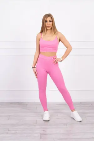 We present a set of blouses and leggings. Tank top. Ribbed blouse and leggings. The set is made of high quality material. The size is universal and will be suitable for ladies in sizes S or M.