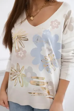 A blouse with a floral motif with a V-neck is an elegant and feminine piece of clothing that combines a romantic floral pattern with the subtlety of a neckline. Made of light material, this blouse is perfect for summer days, adding freshness and delicacy to your styling. The floral motif gives the blouse a charm and feminine character, while the V-neckline subtly highlights the neck, adding elegance. This combination makes the blouse suitable for both casual occasions and more formal events. This blouse goes perfectly with various wardrobe items, creating various styles. It can be worn both with jeans every day and with an elegant skirt or trousers for special occasions. This is a great option for women who want to express their femininity and feel comfortable at the same time. The size is universal and will be suitable for women wearing size S, M or L.