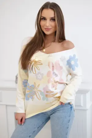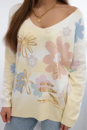 A blouse with a floral motif with a V-neck is an elegant and feminine piece of clothing that combines a romantic floral pattern with the subtlety of a neckline. Made of light material, this blouse is perfect for summer days, adding freshness and delicacy to your styling. The floral motif gives the blouse a charm and feminine character, while the V-neckline subtly highlights the neck, adding elegance. This combination makes the blouse suitable for both casual occasions and more formal events. This blouse goes perfectly with various wardrobe items, creating various styles. It can be worn both with jeans every day and with an elegant skirt or trousers for special occasions. This is a great option for women who want to express their femininity and feel comfortable at the same time. The size is universal and will be suitable for women wearing size S, M or L.