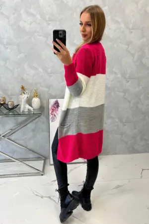We present you a long sweater with wide stripes. Long-sleeved sweater. It has two practical pockets on the front. Very fashionable color combinations. Perfect for any styling. The sweater is made of high quality material. The size is universal and will be suitable for ladies in sizes M, L, XL