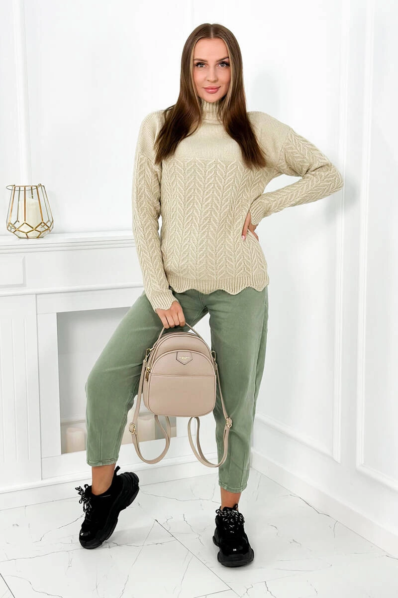 A sweater with a decorative ruffle is an exceptionally feminine and charming piece of clothing that adds delicacy and romance to any styling. A characteristic feature of this sweater is the ruffle, which is placed at the ends of the cuffs and at the bottom of the sweater. This embellishment gives the sweater a subtle and girly look that makes it perfect for wearing on more formal occasions or as part of your everyday wardrobe. The sweater is available in various colors, which allows you to match them to your own style. This type of sweater is often chosen by people who value a romantic and girlish style, but it can also be worn by anyone who wants to add some charm and originality to their styling. To sum up, a sweater with a decorative ruffle is an elegant and charming piece of clothing that can add femininity and delicacy to any styling. It’s the perfect choice for those who want to express their personal style and stand out from the crowd. The size is universal and will be suitable for women in sizes S, M, L.