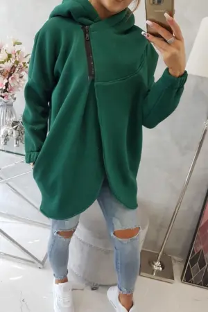 We present you a comfortable sweatshirt. The sweatshirt has a hood, pockets and a zip fastening. The sweatshirt is made of high quality material. The size is universal and will be suitable for ladies wearing sizes S, M or L.