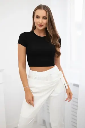 Tie-up trousers with an asymmetric front are a stylish and original piece of clothing that attracts attention due to its unusual detail. The asymmetric front adds character and modernity to the pants, giving them a unique design. The tie at the waist adds an additional decorative element and at the same time allows you to adjust the pants to your figure. This style of trousers can be worn both every day and for more special occasions. The asymmetric detail gives the trousers a modern and unconventional look, which makes them a perfect choice for people looking for fashionable solutions. Tie-up trousers with an asymmetric front are a perfect choice for people who want to stand out from the crowd and experiment with fashion. They can be combined with both a loose top for everyday use and a more elegant blouse for special occasions, creating unique and stylish combinations. The size is universal and will be suitable for women wearing size S, M or L.