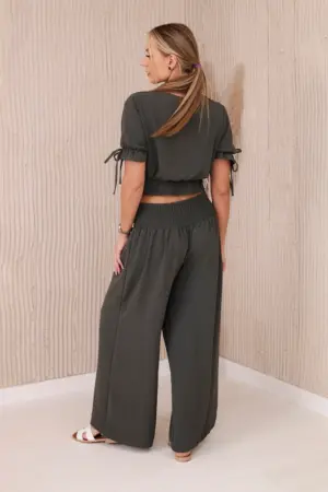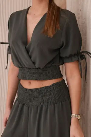 A two-piece set, consisting of trousers and a blouse, is the perfect solution for those who value harmony and style in one. By choosing such a set, you can be sure that your styling will be complete and refined in every detail. The trousers, ensuring comfort and freedom of movement, are combined with a blouse that adds elegance and sophistication to the entire styling. Thanks to the ability to combine two elements into one coherent whole, you can create a variety of looks suitable for various occasions, from everyday outings to more formal meetings. A two-piece set is a practical and fashionable solution for every woman who values comfort and style. The size is universal and will be suitable for women in size S, M or L.