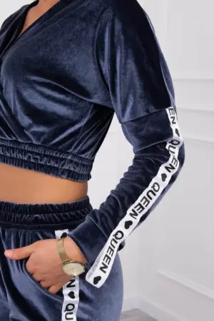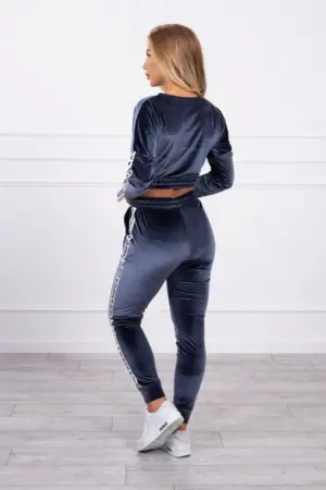 We present you a set of sweatshirts and pants. The set is made of velor. Sweatshirt with a neckline. A decorative tape with an inscription on the shoulders. At the bottom of the sweatshirt there is a sewn in rubber. Pants with pockets and a tape on the legs. A very fashionable and stylish set. The set is made of high quality material. The size is universal and will be suitable for ladies in sizes S, M or L.