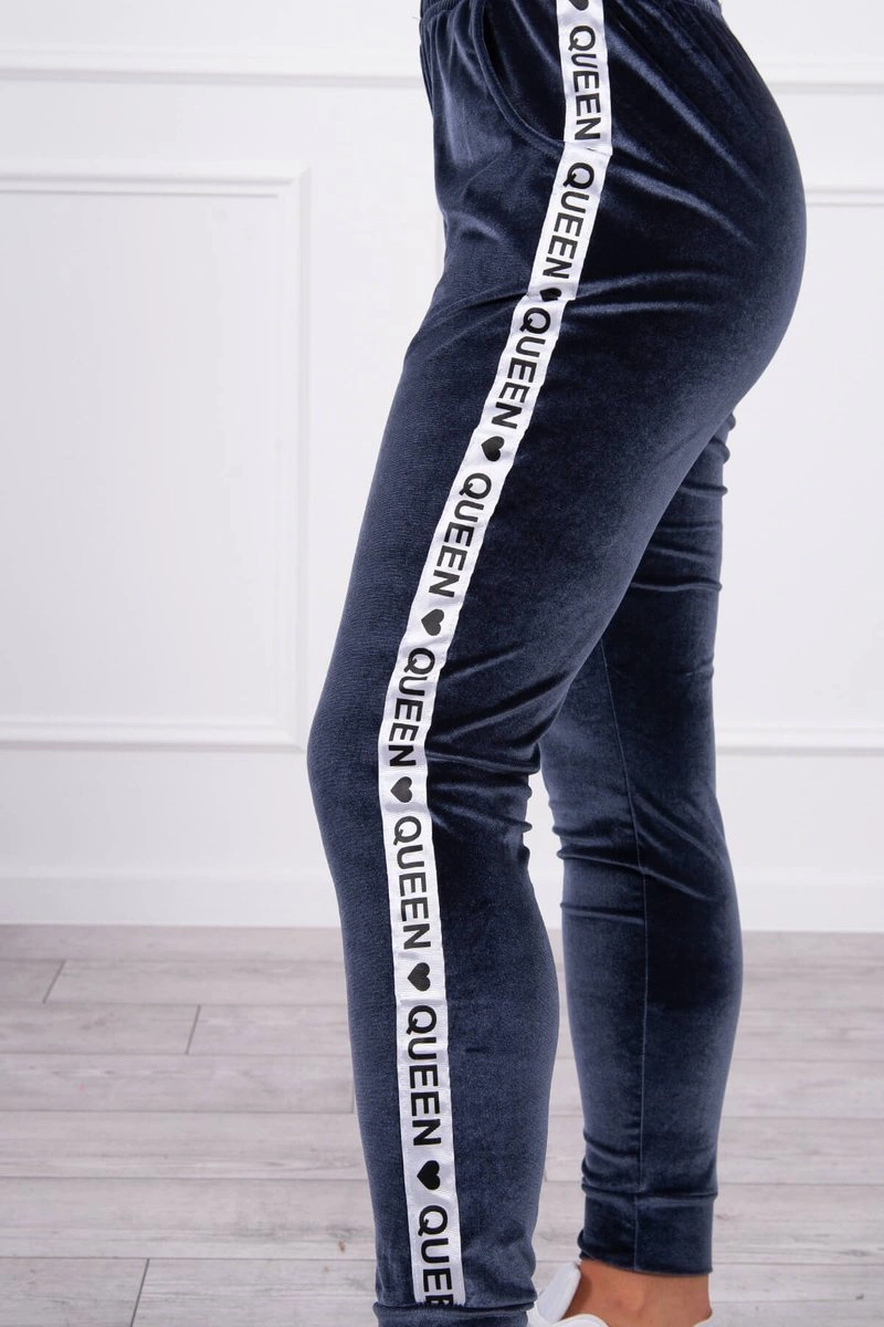 We present you a set of sweatshirts and pants. The set is made of velor. Sweatshirt with a neckline. A decorative tape with an inscription on the shoulders. At the bottom of the sweatshirt there is a sewn in rubber. Pants with pockets and a tape on the legs. A very fashionable and stylish set. The set is made of high quality material. The size is universal and will be suitable for ladies in sizes S, M or L.