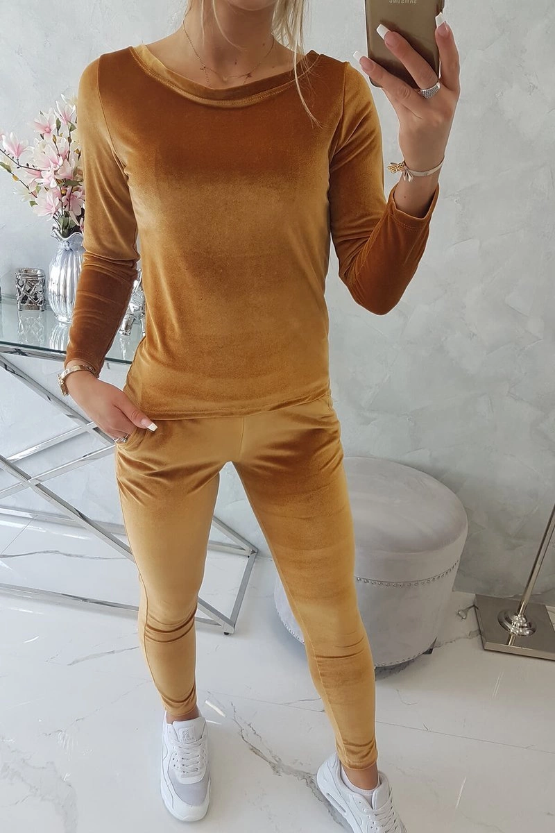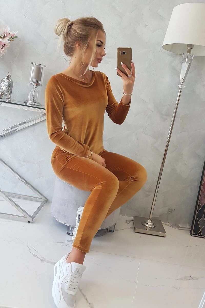 We present you a set of sweatshirts and pants. The set is made of velor. The sweatshirt and pants have wrinkles at the back. A very fashionable and stylish set. The set is made of high quality material. The size is universal and will be suitable for ladies in sizes S, M or L.