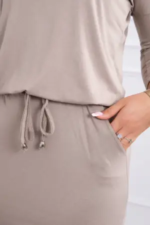 We present you a comfortable dress. The dress has a tie at the waist and pockets. An ideal position every day. The dress is made of high quality material. The size is universal and will be suitable for ladies wearing sizes S, M or L.