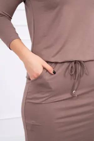 We present you a comfortable dress. The dress has a tie at the waist and pockets. An ideal position every day. The dress is made of high quality material. The size is universal and will be suitable for ladies wearing sizes S, M or L.