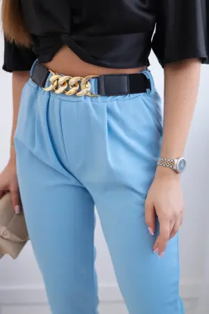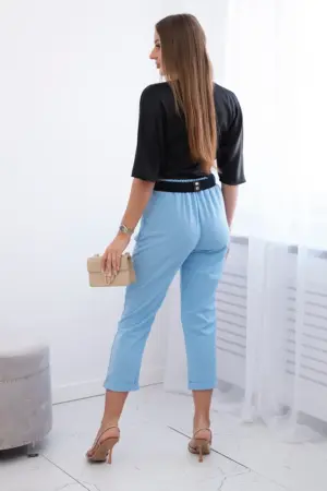 Viscose trousers with a decorative belt are a combination of comfort, elegance and a subtle detail that makes these trousers unique. Made of light and pleasant to the touch material, they provide excellent wearing comfort, perfect for both summer days and more formal occasions. The decorative belt adds a subtle note of style and originality to the pants, emphasizing the waist and adding character to the entire styling. Thanks to this detail, the pants become a unique piece of clothing that will make you stand out from the crowd. Viscose trousers go perfectly with both elegant blouses and shirts, as well as more casual tops and T-shirts. You can wear them to work, meetings with friends or evening outings, always maintaining style and comfort. Thanks to high-quality workmanship and universal design, viscose trousers with a decorative belt are an irreplaceable element of the wardrobe of every woman who values ????elegance and comfort in everyday clothes. The size is universal and will be suitable for women wearing size S, M or L.