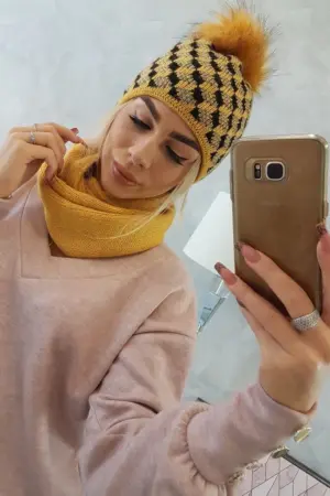We offer you a warm set consisting of a hat and a chimney. The cap is lined with fleece and has a pompon. The set is distinguished by an attractive appearance and solid workmanship. A very nice pattern will make the set a fashionable and practical accessory for many seasons. The color of pompoms may differ from those shown in the pictures. The size of the hat and scarf is universal.