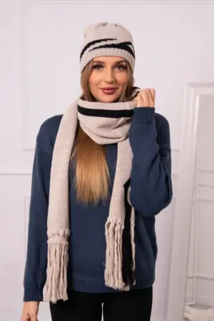 We offer you a warm set consisting of a hat and a scarf. The set is distinguished by an attractive appearance and solid workmanship. A very nice pattern will make the set a fashionable and practical accessory for many seasons. The size of the hat and scarf is universal.