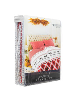The Christmas cotton bedding set has a comforter cover and 2 70×80 cm pillowcases, so it is dedicated for a double bed. It is made of a natural fabric called flat cotton, consisting of 100% cotton. It has a weight of 125g/m2, which guarantees the optimal thickness of the product. The structure of the fabric resembles linen, it is matte, while it becomes smooth and soft to the touch after washing. It is fastened with an approved zipper.