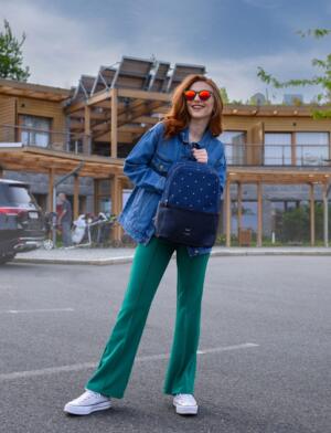Nautical doesn’t have to be associated with just stripes. We popped white polka dots into it and look how pretty it looks! So throw on your Zane Dotty Blue backpack and head out to meet new adventures, whether they be navy or polka dotted.