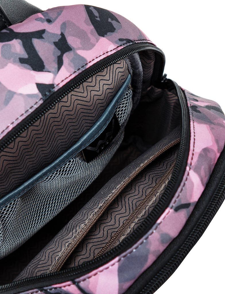 - Internal and external zippered pockets
