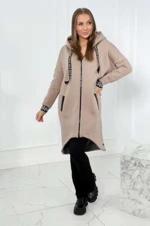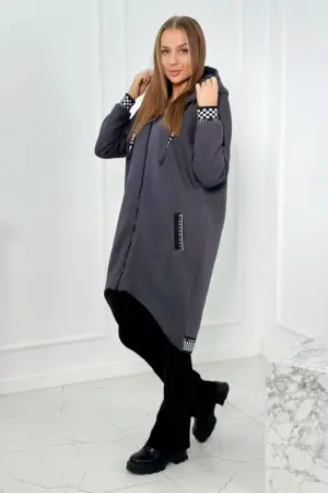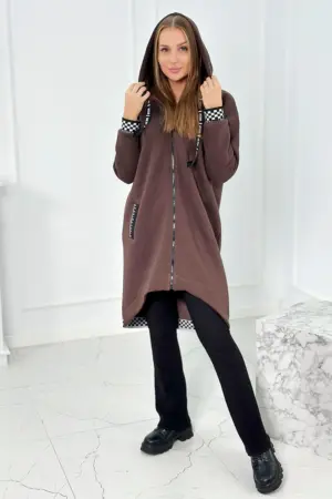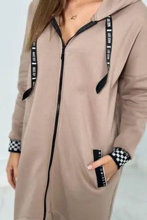 An extremely stylish zippered sweatshirt with a hood, perfect for colder days. Made of high-quality cotton, it guarantees not only comfort, but also durability and soft touch. The sweatshirt has a practical zipper that makes it easy to put on and take off, which makes it a perfect option for quick weather changes. The hood adds a unique character to the sweatshirt, giving it a youthful and modern look. Decorative cuffs on the sleeves and bottom of the sweatshirt give it a subtle accent, making it not only a practical but also a fashionable element of the wardrobe. This sweatshirt is the perfect combination of functionality and style, perfect for many occasions. Regardless of whether you are going for a walk, to school or to meet friends, this sweatshirt will certainly make you stand out from the crowd. Available in a variety of colors so you can match it to your individual style. Don’t wait – emphasize your fashion awareness with our sweatshirt. The size is universal and will be suitable for women wearing size S, M or L.